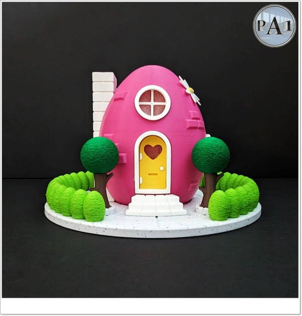 Verlicht elfenhuisje in de vorm van een paasei