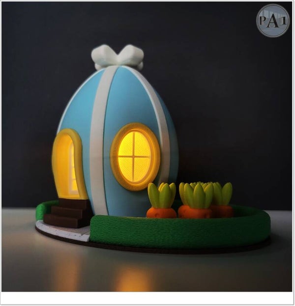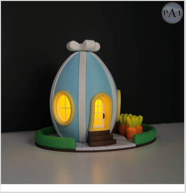 Verlicht huisje in de vorm van een paasei